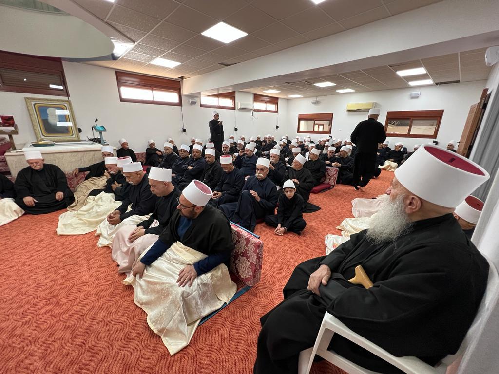 في مستهلّ الزّيارة، بارك سماحة الشّيخ موفق طريف، الرّئيس الرّوحيّ للطّائفة الدّرزيّة هذا الجمع المبارك، متطرّقًا إلى ما في الزّيارات من معانٍ روحيّة دينيّة، وخاصّةً قُبيل حلول ليالي العشر المباركة الّتي تسبق عيد الأضحى المبارك. خلال كلمته، تطرّق سماحته أيضًا إلى أهميّة الحفاظ على وحدة الصّفّ والكلمة في القضايا المصيريّة لأبناء الطّائفة في البلاد والخارج، وإن اختلفت الآراء وتعدّدت. عليه، جدّد سماحته نداءه إلى الأخوة في سوريا وجبل الدّروز الّذين يعانون ظروفًا صعبة نتيجة الحرب هناك، داعيًا من المقام لزوال الهموم والمحن عنهم وعودة الجبل وسوريا إلى سابق العهد. كذلك، دعا سماحته للأخوة في جبل لبنان لللحفاظ على استقرار الوضع عندهم، والتعاضد فيما بينهم لاجتياز المرحلة الحاليّة.